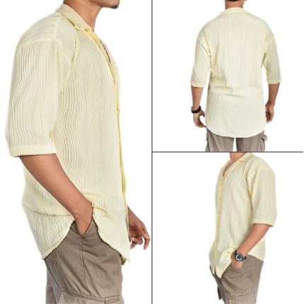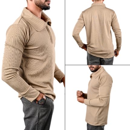 Beige Textured Long sleeve Zip Polo