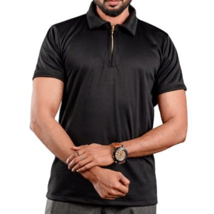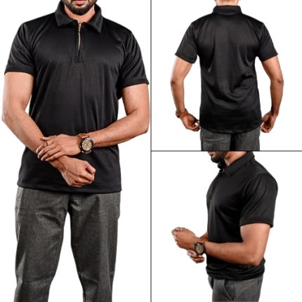 Black Textured Zip Polo
