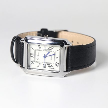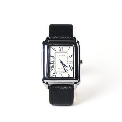 Luxury Rectangle Dial Leather Strap Quartz Watch